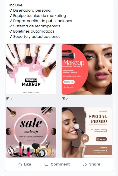 “Mi diseñadora me ayuda a elegir mis promos del mes y mi página se ve hermosa!”